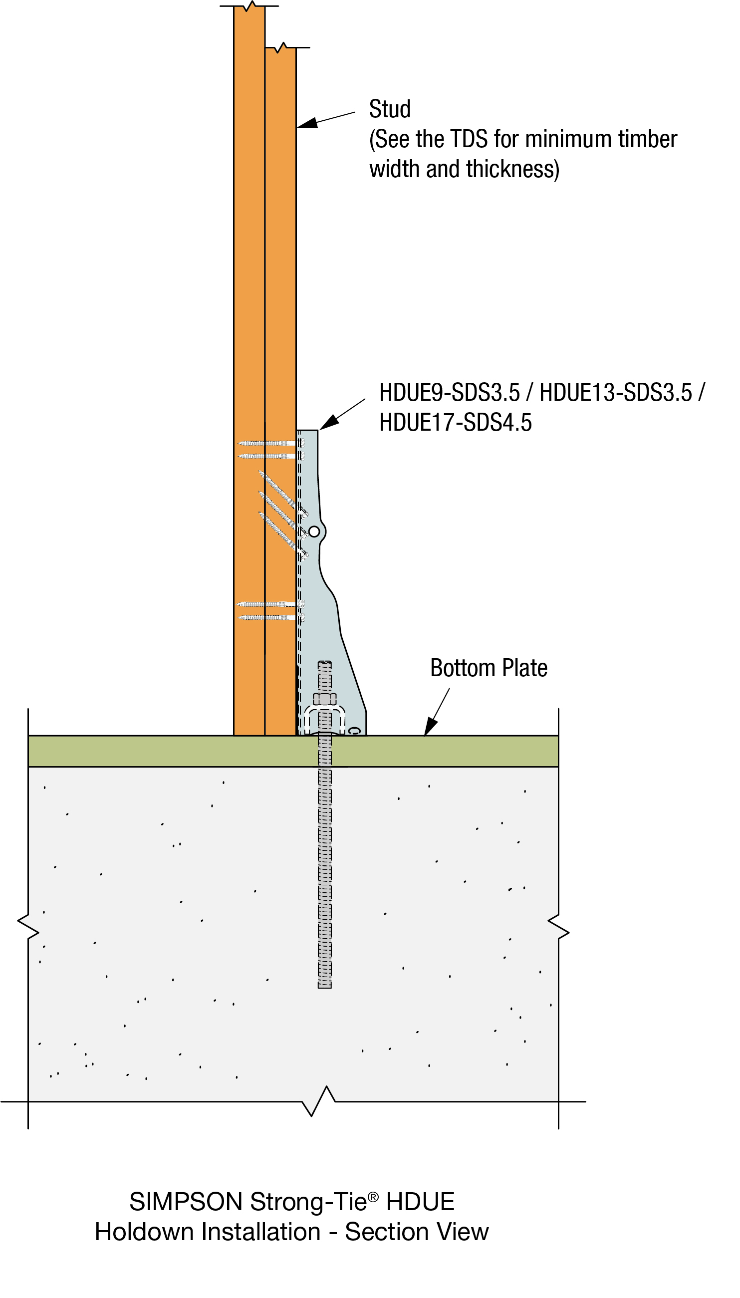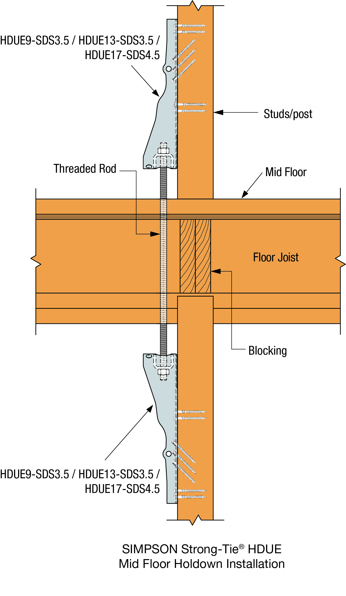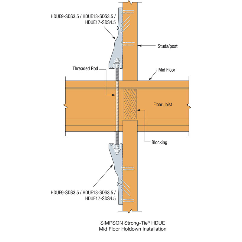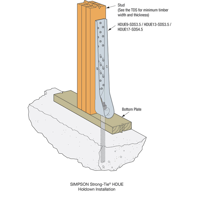 Designed as the direct replacement for our industry-leading HDU, the new HDUE closely matches its predecessor's overall physical dimensions and capacities. The HDUE provides exceptional overturning resistance for critical lateral force-resisting applications, including shear walls and braced wall panels in timber construction.