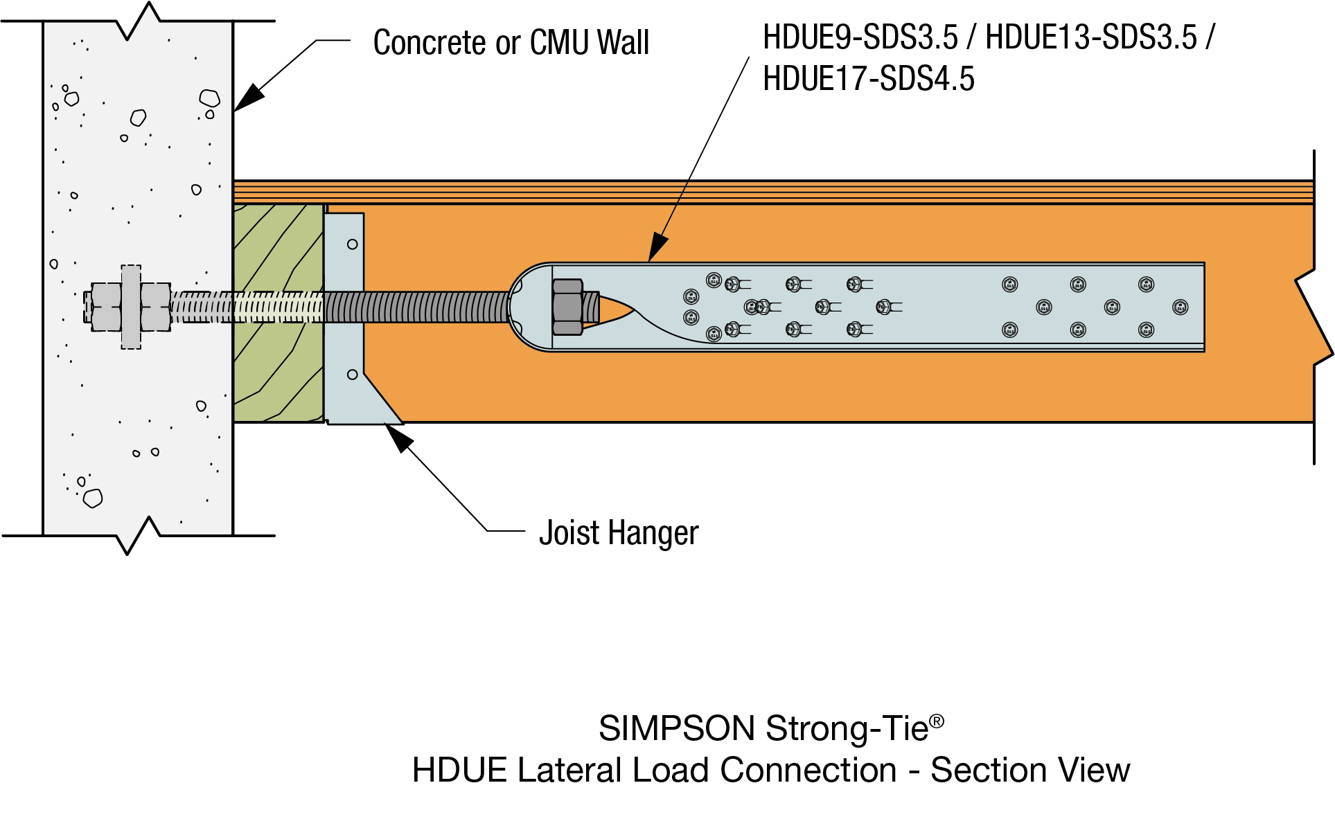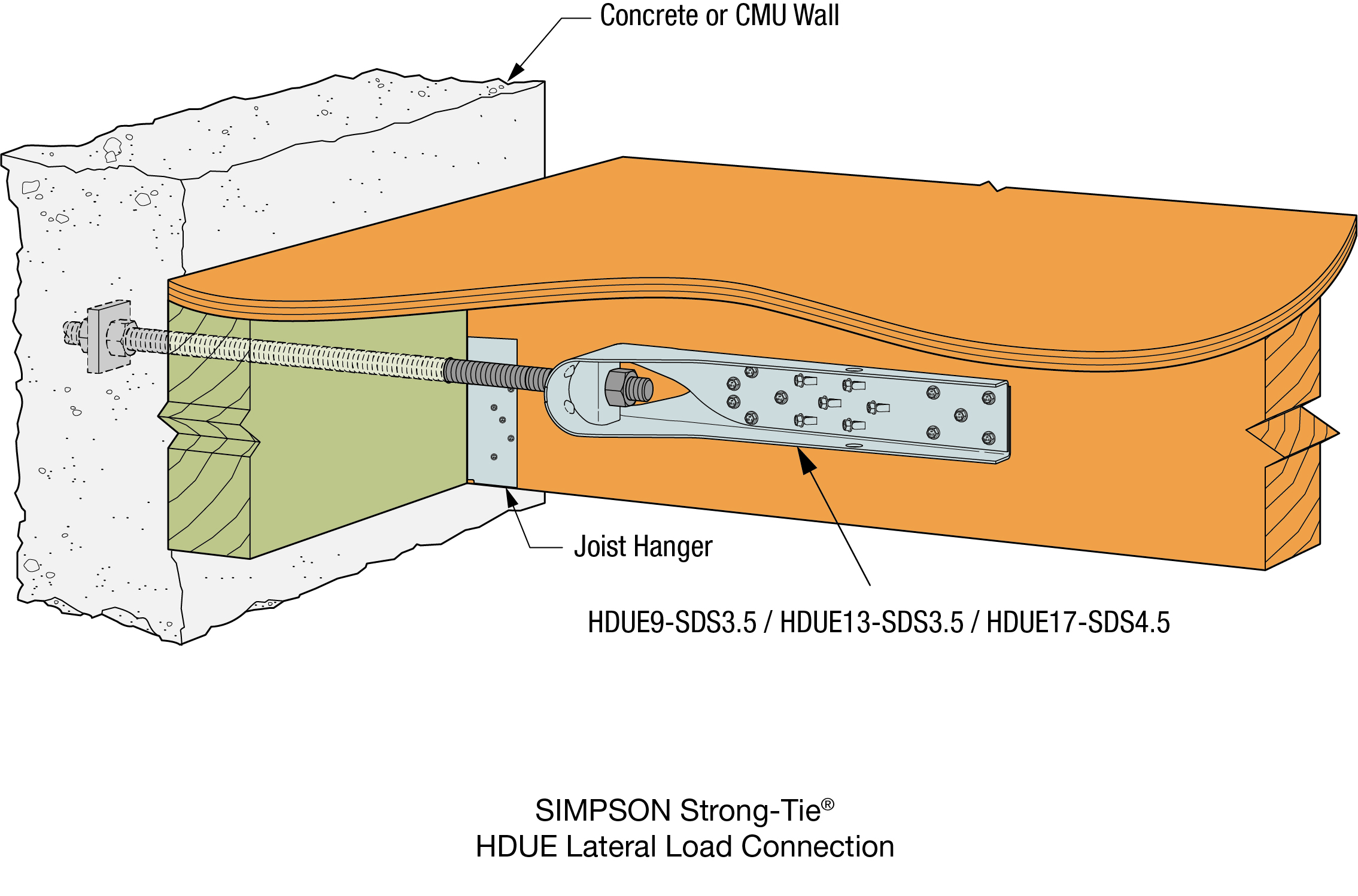 • HDUE9: Includes (1) HDU9 Holdown; (1) Crescent Washer; (16) SDS Connector Screws