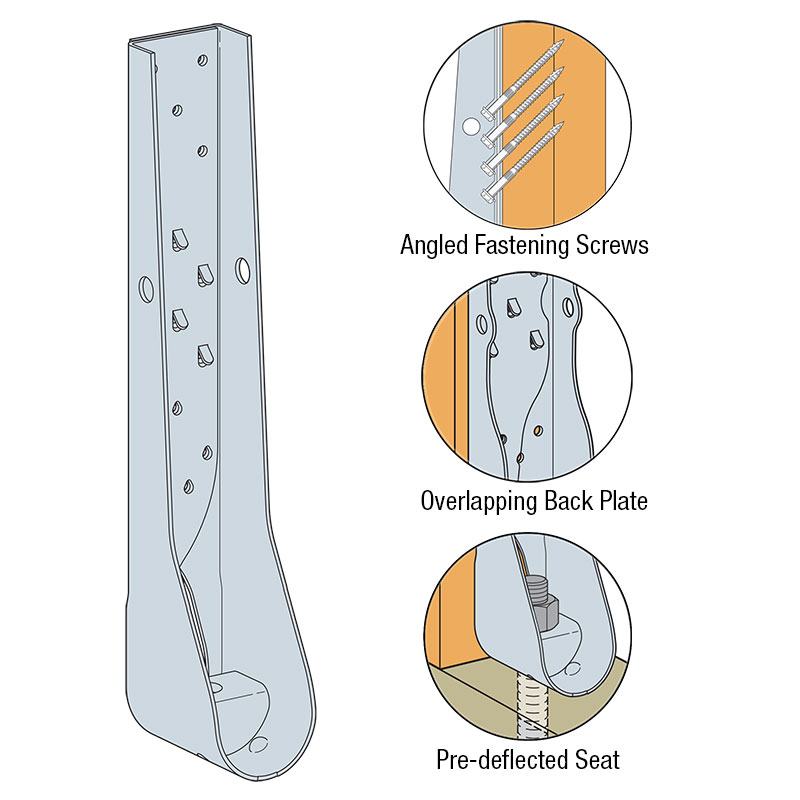 • Overlapping back plate increases fastener strength and shear values, helping prevent studs splitting.