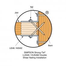 Joist hangers are designed to provide support underneath the joist, rafter or beam to provide a strong a connection. The LUS Double Shear Joist Hanger values engineering at its finest. All hangers in the LUS series have Double-Shear Nailing. This innovation distributes the load through two points on each joist nail for greater strength. It also allows the use of fewer nails, faster installation and the use of standard nails for all connections.